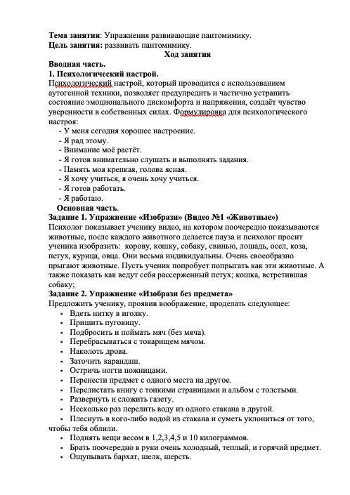 Психологическое занятия: Упражнения развивающие пантомимику