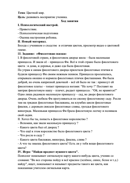 Психологическое занятия: Цветной мир
