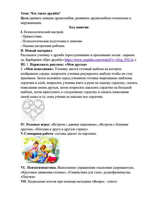 7) Что такое дружба? (привить навыки дружелюбия, развивать дружелюбное отношение к окружающим)