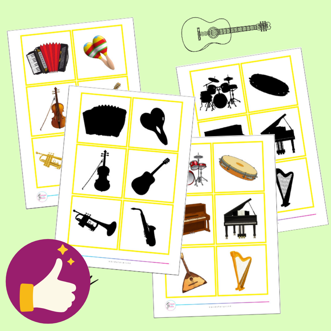 В наборе 12 пар с музыкальными инструментами