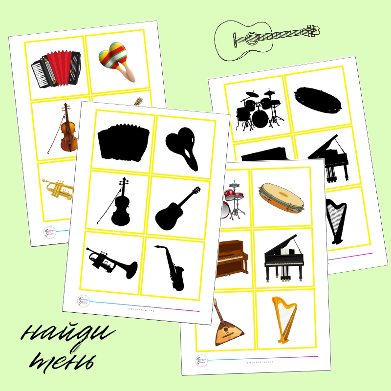 музыкальные инструменты - найди тень