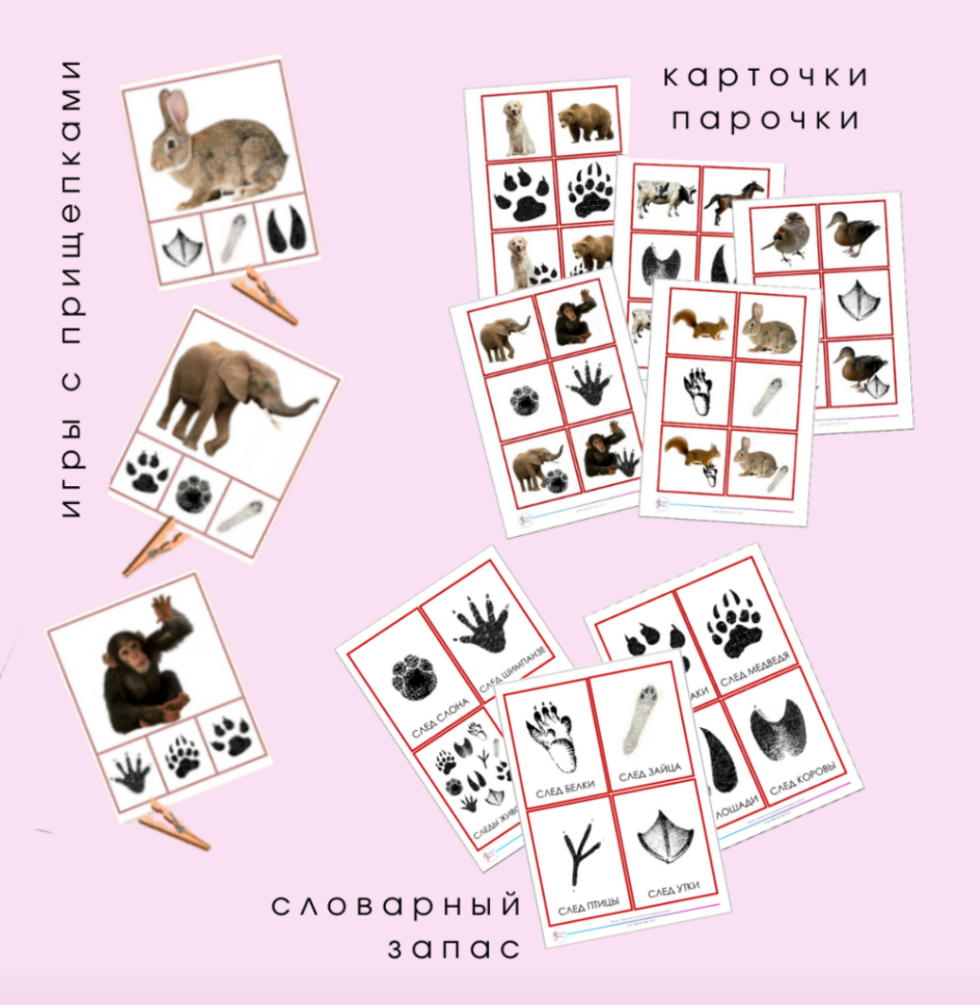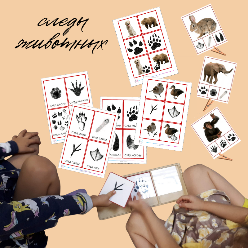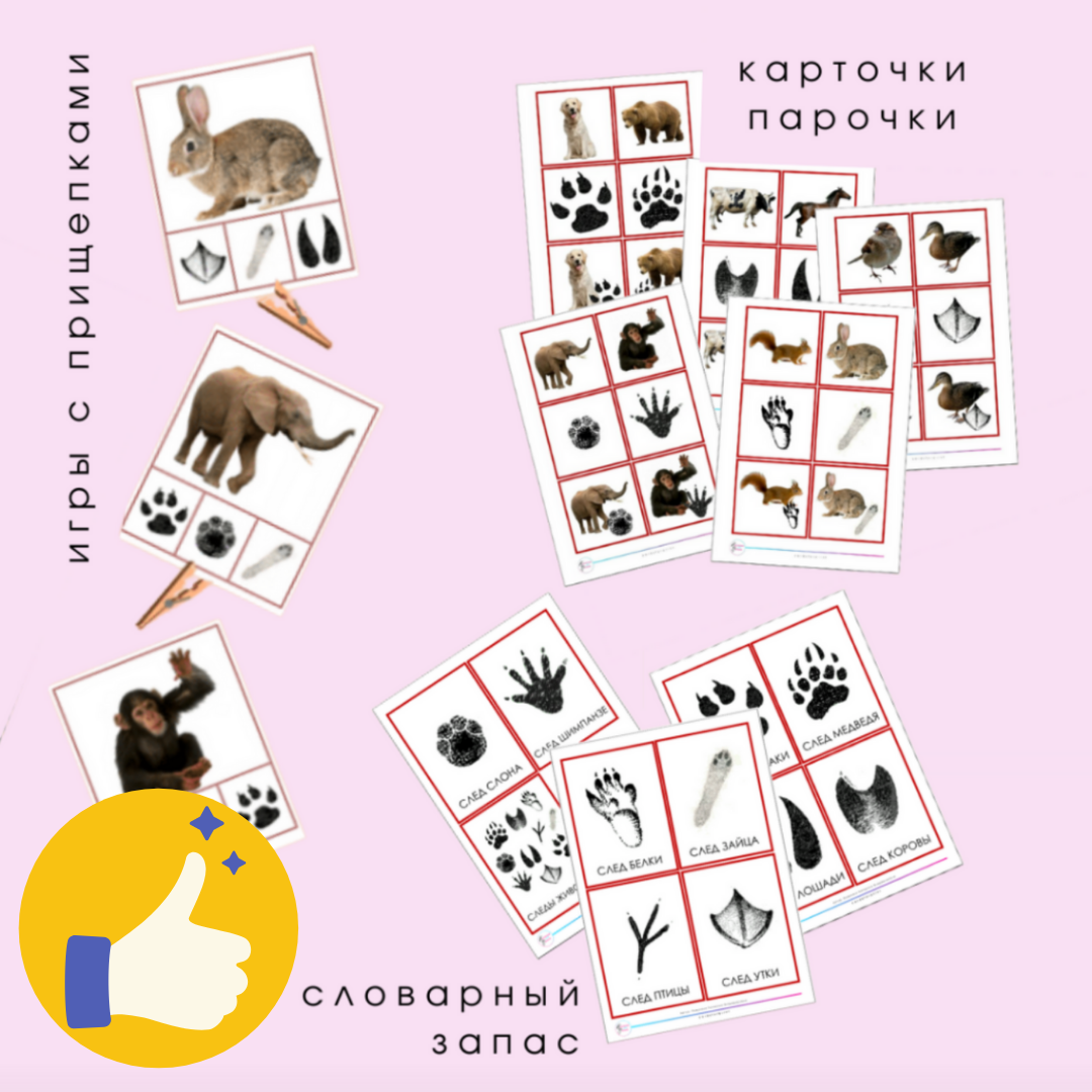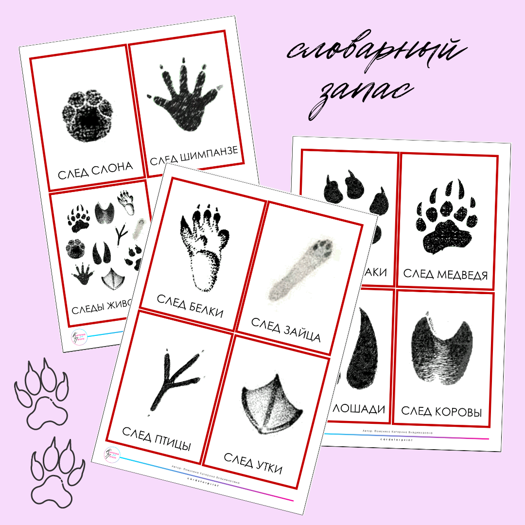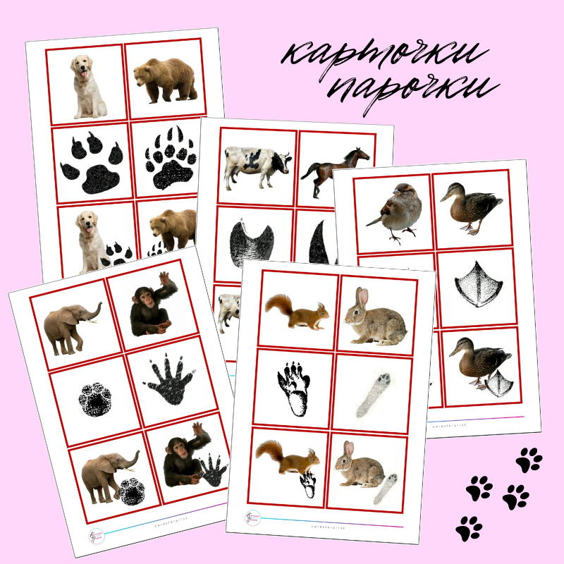 следы животных - набор развивающих карточек