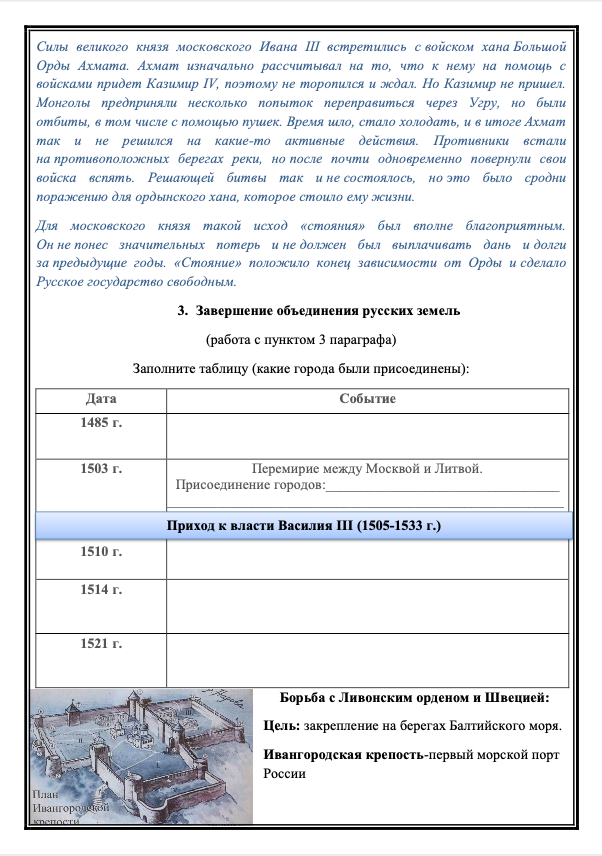 Рабочий лист на тему:Московское государство и его соседи во второй половине XV в.
