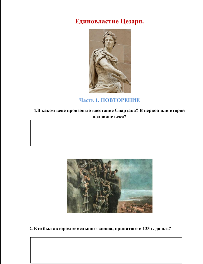Рабочий лист по всеобщей истории 5 класс по теме "Единовластие Цезаря".