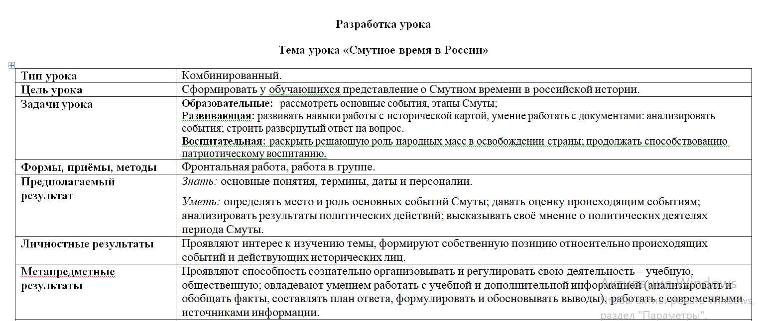 "Смутное время в России". Разработка урока