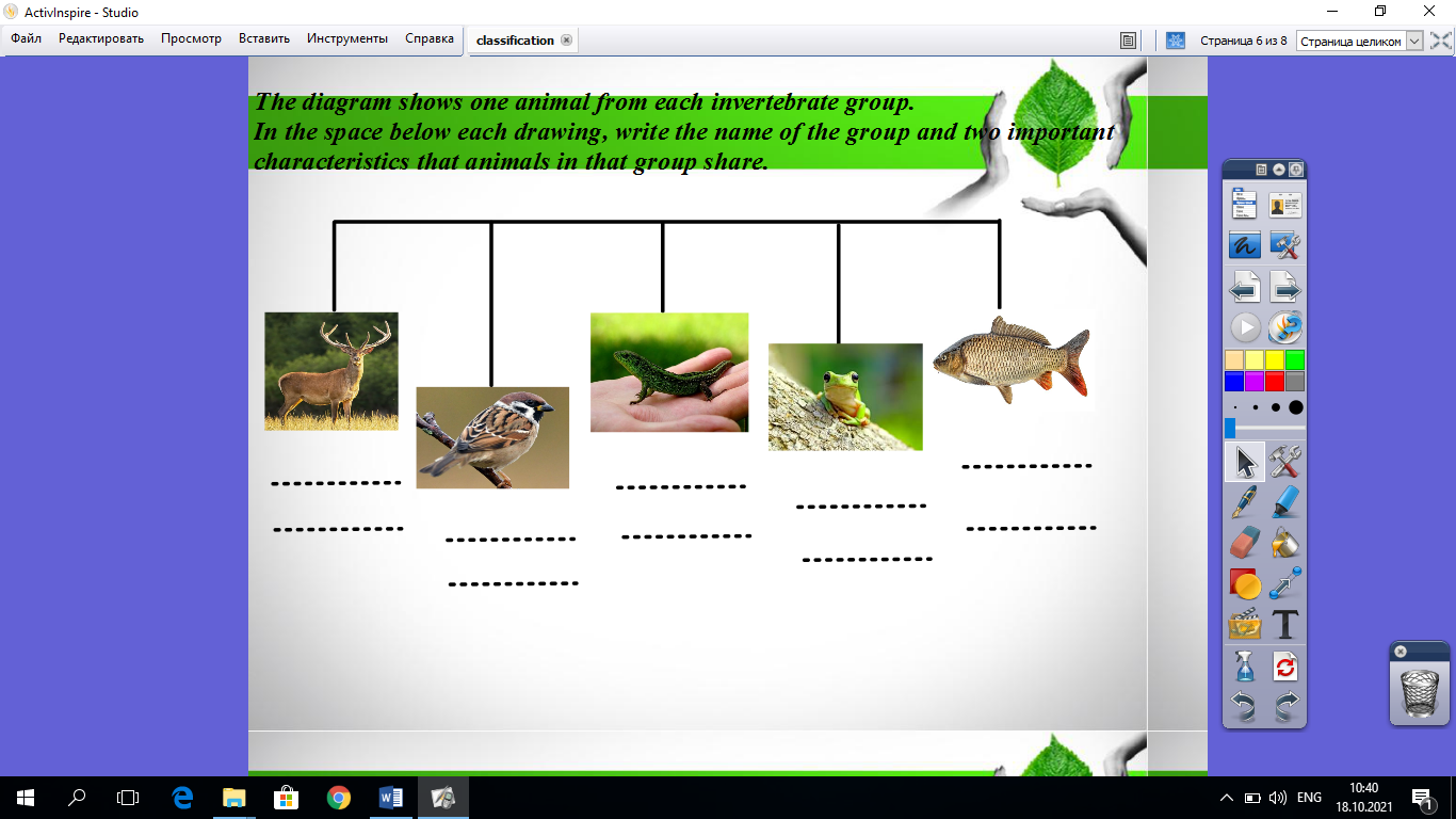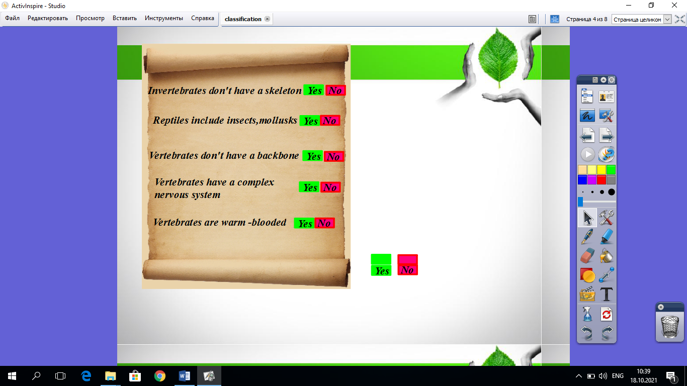 6-10 флипчартов к каждому уроку, в зависимости от объема темы . Биология начинается с 7-го класса, и поскольку биология преподается на английском языке, даются наглядные задания для повышения интереса учащихся к предмету. Выполняя задания на флипчарте, учащиеся могут убедиться, что их ответы правильные или неправильные.