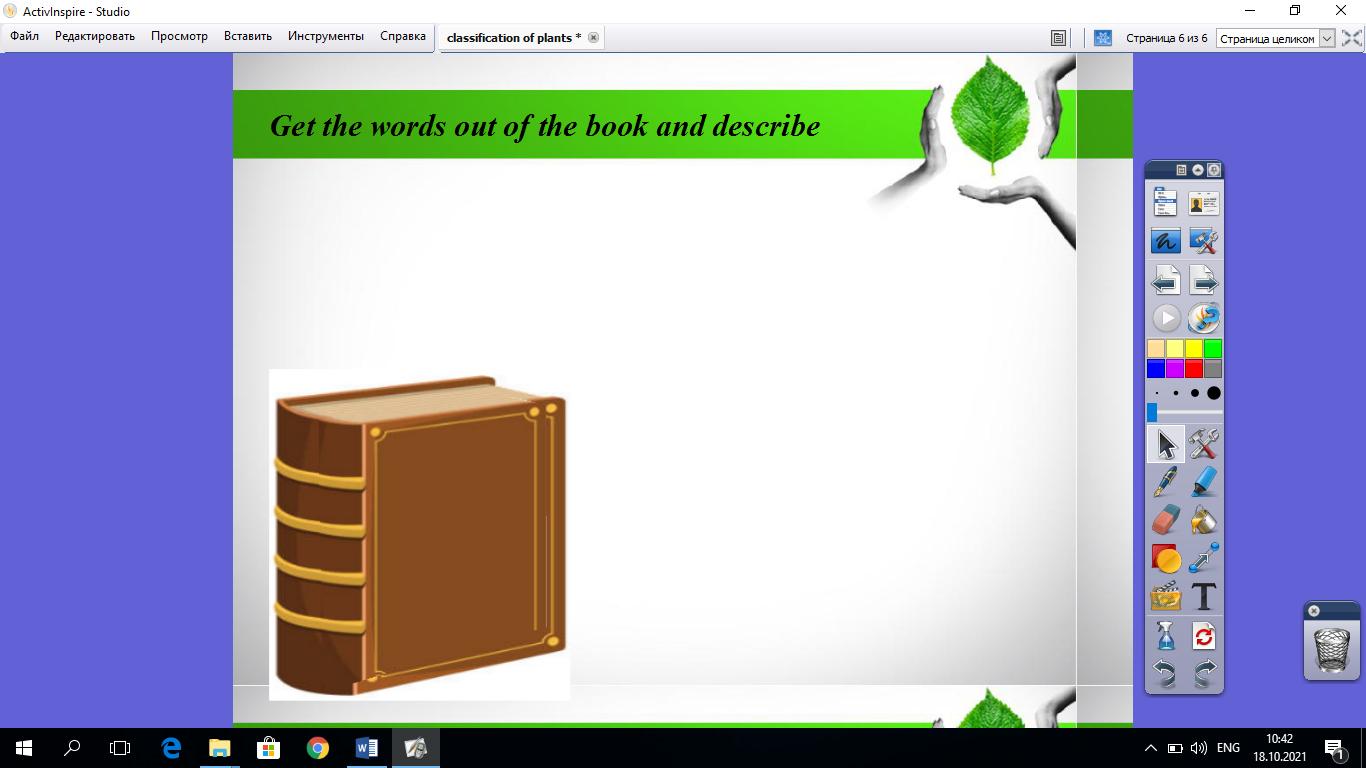 6-10 флипчартов к каждому уроку, в зависимости от объема темы . Биология начинается с 7-го класса, и поскольку биология преподается на английском языке, даются наглядные задания для повышения интереса учащихся к предмету. Выполняя задания на флипчарте, учащиеся могут убедиться, что их ответы правильные или неправильные.