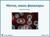 Бұл ресурс көзі жалпы білім беретін мектептің 9 класс оқушылары үшін «Жасушалық цикл» бөлімі бойынша, «Митоз, оның фазалары» тақырыбында митоздың фазаларын сипаттап, өсімдіктер мен жануарларда митоз арқылы қандай жасушалар бөлінетіндігі туралы ақпарат алуға негізделген.