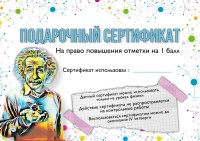 Сертификат "Антидвойка" дает право на увеличение отметки за ответ на 1 балл или на невыполнение домашнего задания по одному предмету. Данный сертификат можно выдавать для стимулирования учащихся, в качестве мотивации отдельных учеников