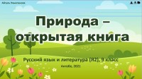 Данная презентация разработана по предмету Русский язык и литература (Я2) для 9 класса по разделу "Природные ресурсы планеты Земля" по теме "Природа - открытая книга"